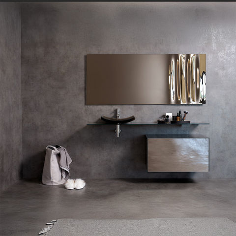 Il piano dei lavabi, a vasca singola o doppia, è in vetro temperato 12 mm retro laccato con staffe di